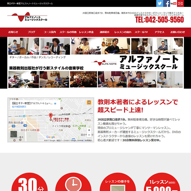 WebsiteJR国立駅近くにあるギター教室、アルファノートミュージックスクール HP・デザイン・CMS制作