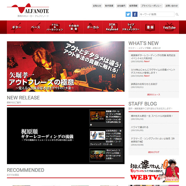 教則DVD・ライブDVDメーカー アルファノート HP・デザイン・CMS制作