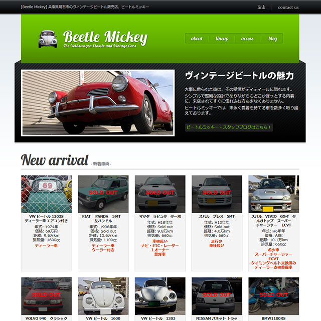 Website兵庫県明石市のヴィンテージビートル販売店、「Beetle Mickey」(公開終了)