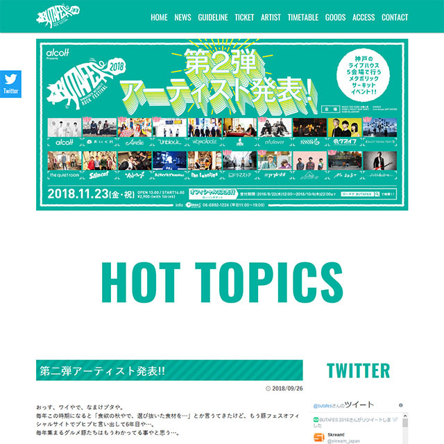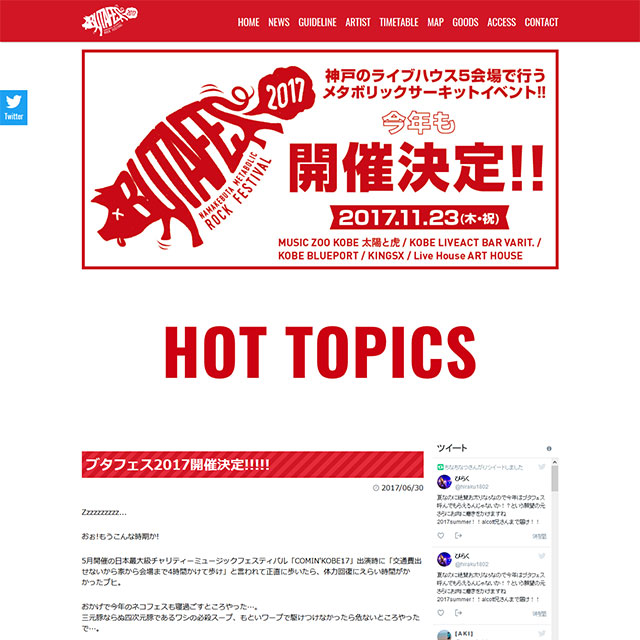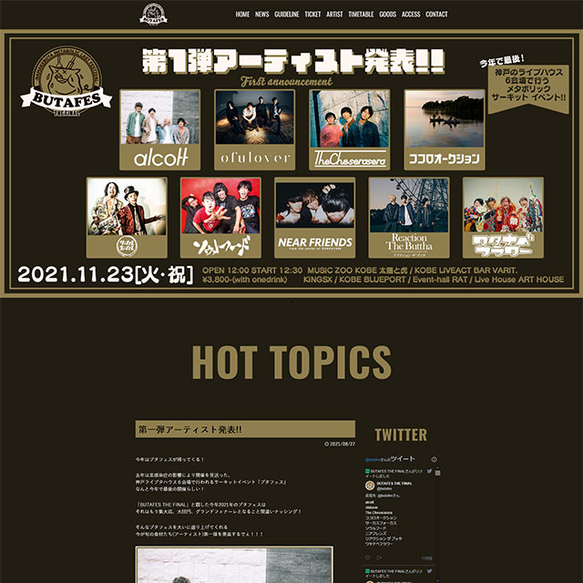 alcott主催、神戸のライブハウスで行うメタボリックサーキットイベント、ブタフェスHP・CMS制作(2013-)