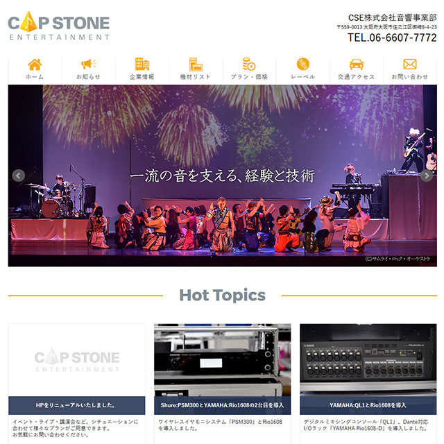 WebsiteCSE株式会社音響事業部、大阪住之江のライブ音響・イベント・講演会、キャップストーンエンターテイメント音楽事業部 HP・デザイン・CMS制作