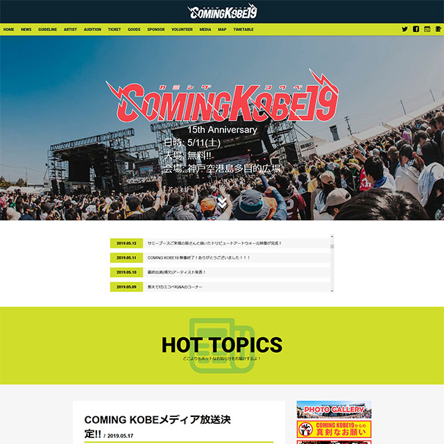 Website日本最大級チャリティーミュージックフェス、3万人規模イベントHPのデザイン・管理・悪戯を毎年制作。(2010-2019)