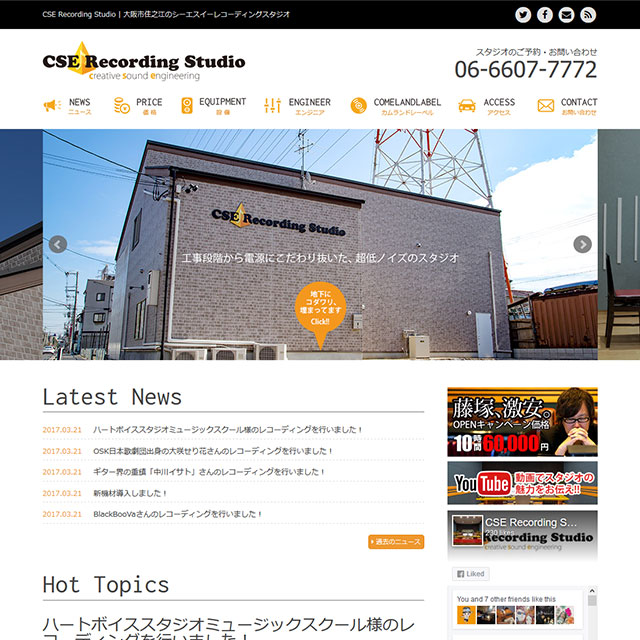 WebsiteCSE Recording Studio、大阪住之江のレコーディングスタジオ HP・デザイン・CMS制作