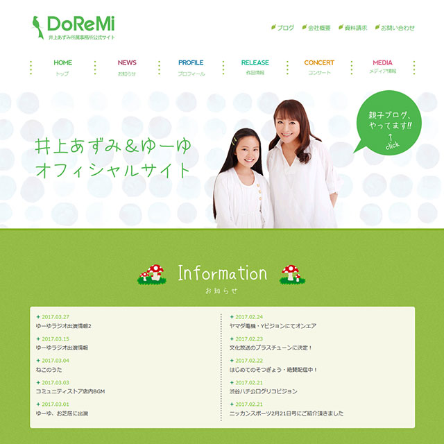 Websiteジブリ・NHKみんなのうたでお馴染みの井上あずみ、ゆーゆが所属する有限会社ドレミ HP・デザイン・CMS制作