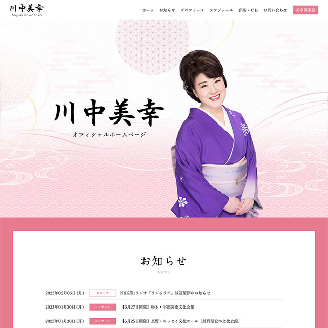 演歌歌手、川中美幸さまのHPデザイン・CMS制作