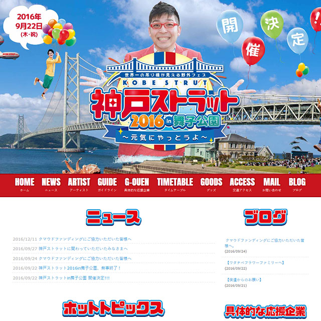 Websiteワタナベフラワー主催、神戸の無料野外フェス、神戸ストラット2016 HP・デザイン・CMS制作