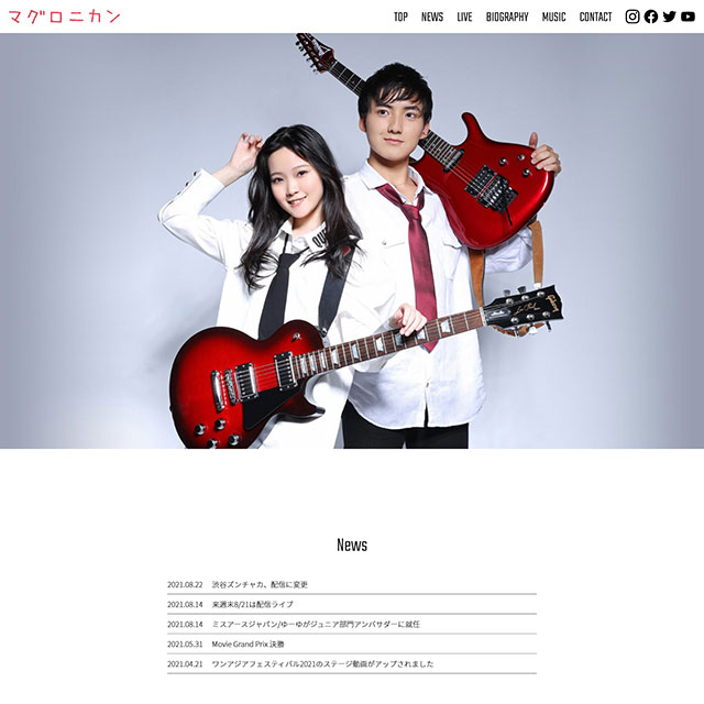Websiteマグロニカン | ヴォーカルゆーゆ&ギター力丸のティーンズロックユニット。 HP・デザイン・CMS制作