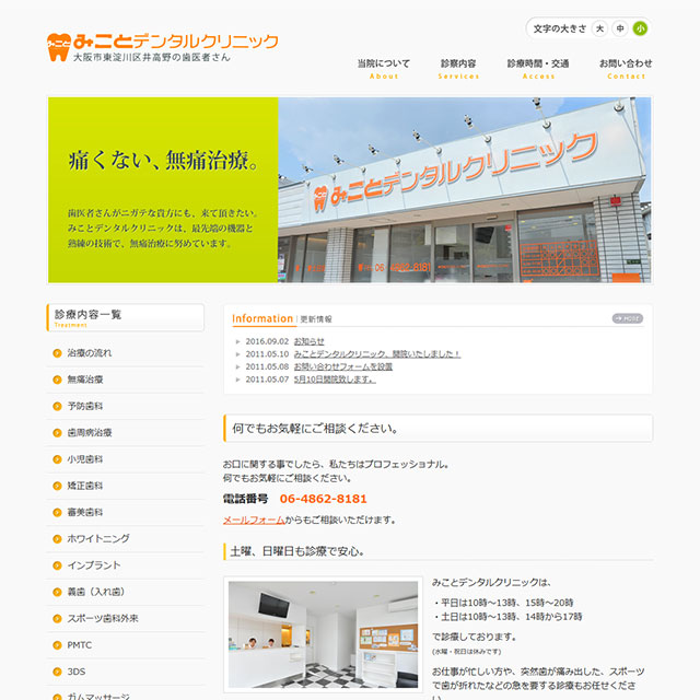 Website大阪市東淀川区井高野の歯医者さんみことデンタルクリニック HP・デザイン・CMS制作