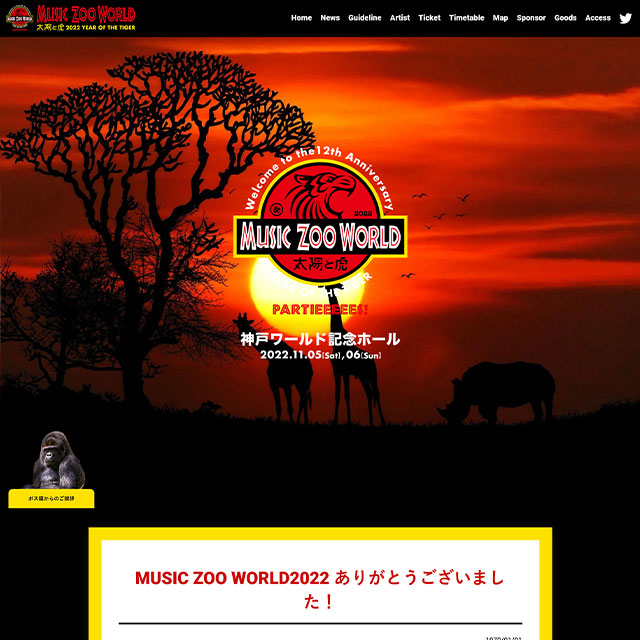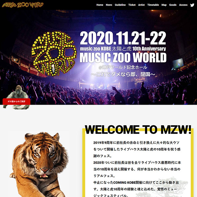 Website太陽と虎の12周年記念公演「MUSIC ZOO WORLD」のHPデザイン・CMS制作
