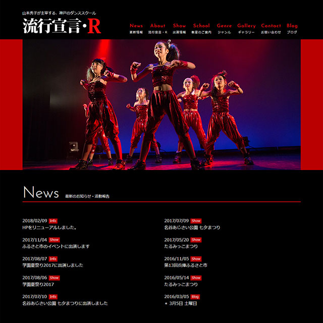 Website山本秀子主宰のダンス教室、流行宣言・R HP・デザイン・CMS制作