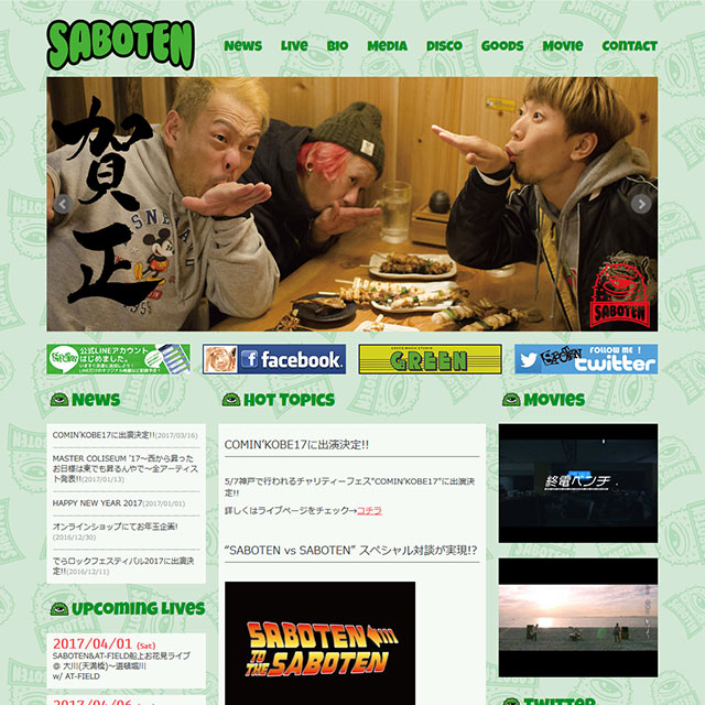 Website大阪、門真から生まれた ハイテンション3ピースバンドSABOTENのHP・CMS制作