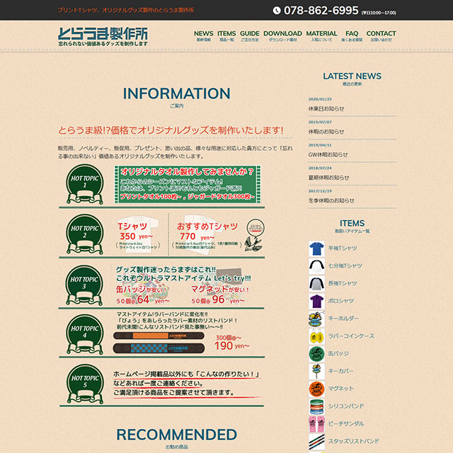 グッズ制作のとらうま製作所さまHP・CMS制作